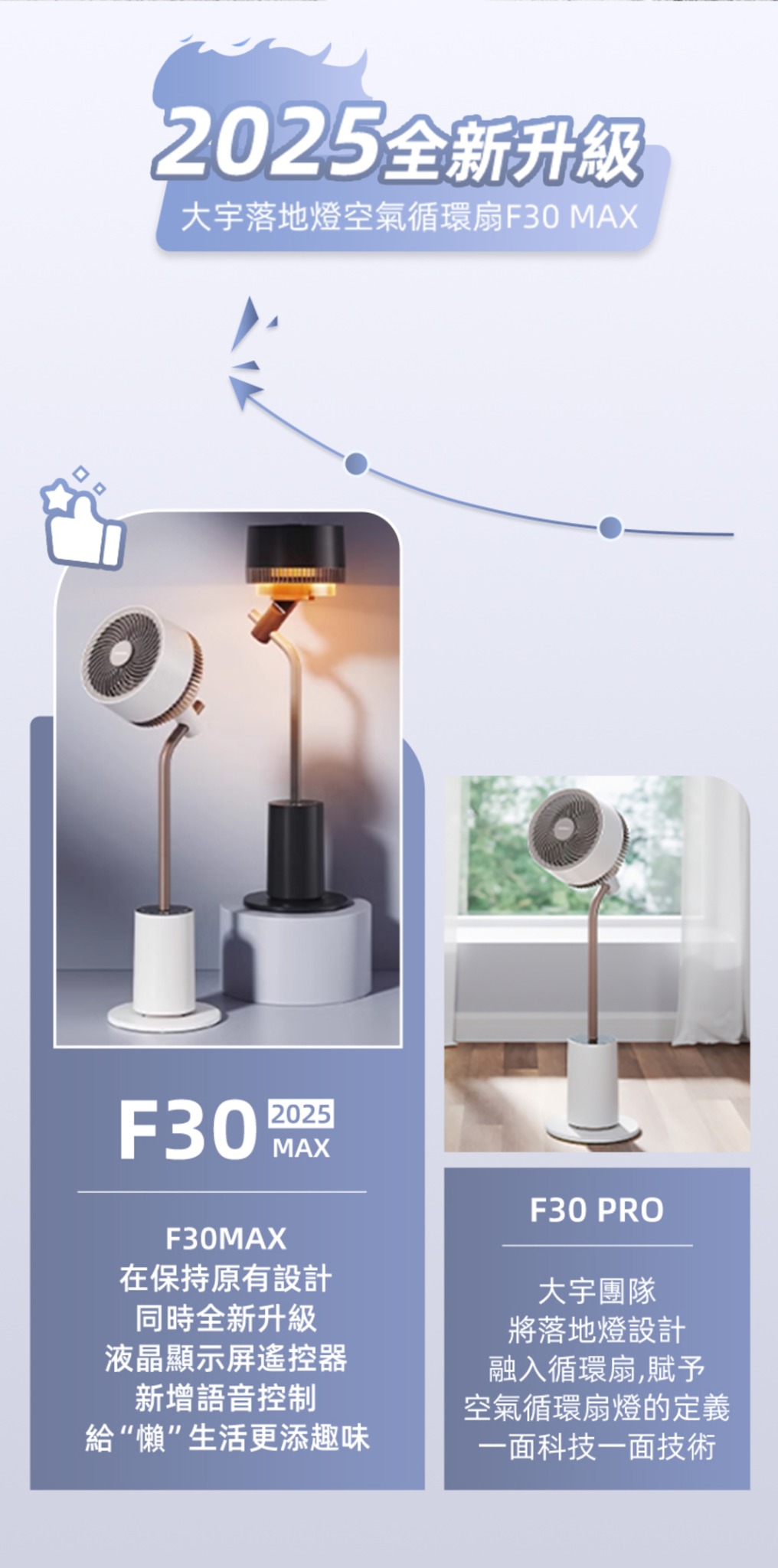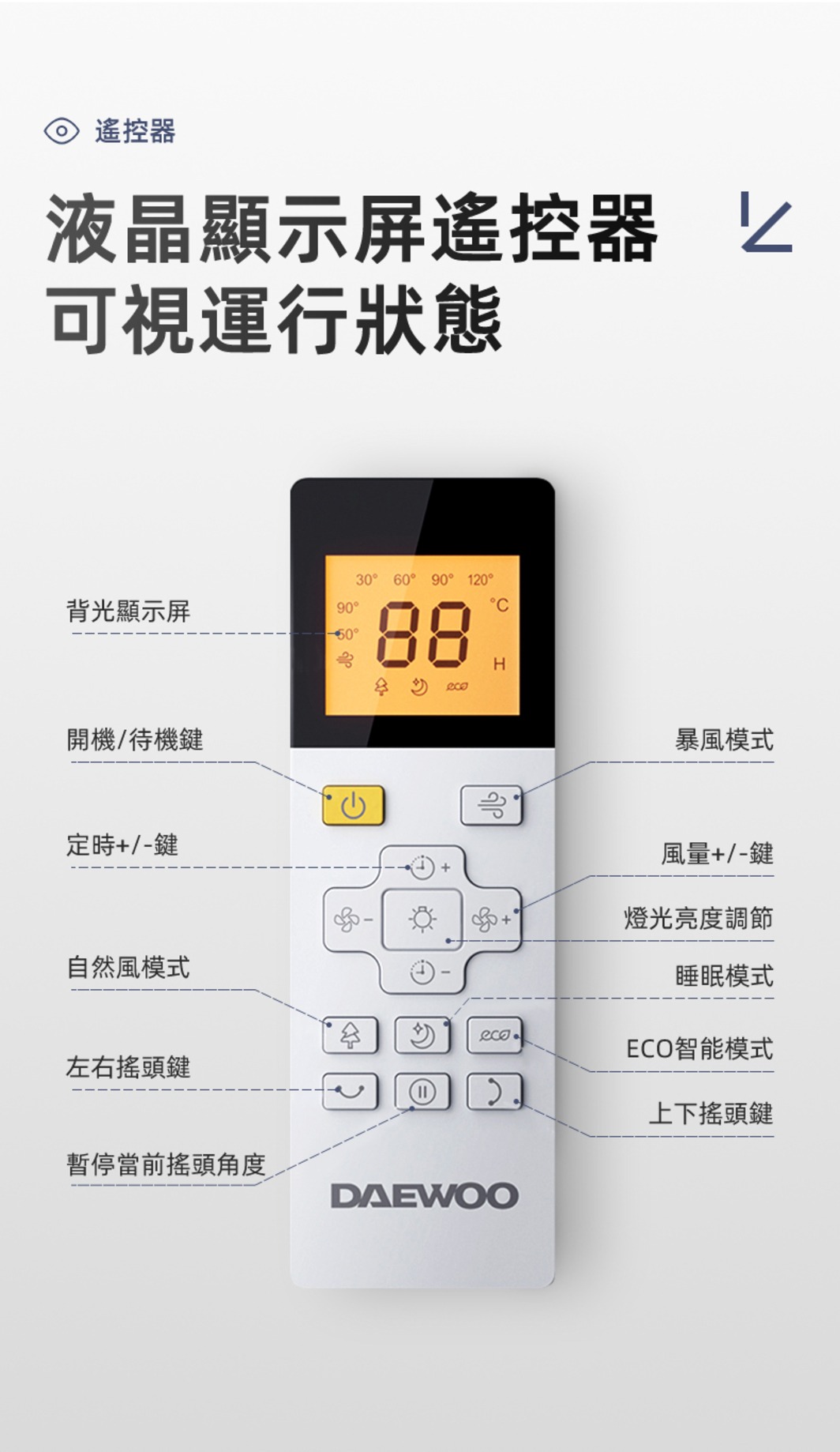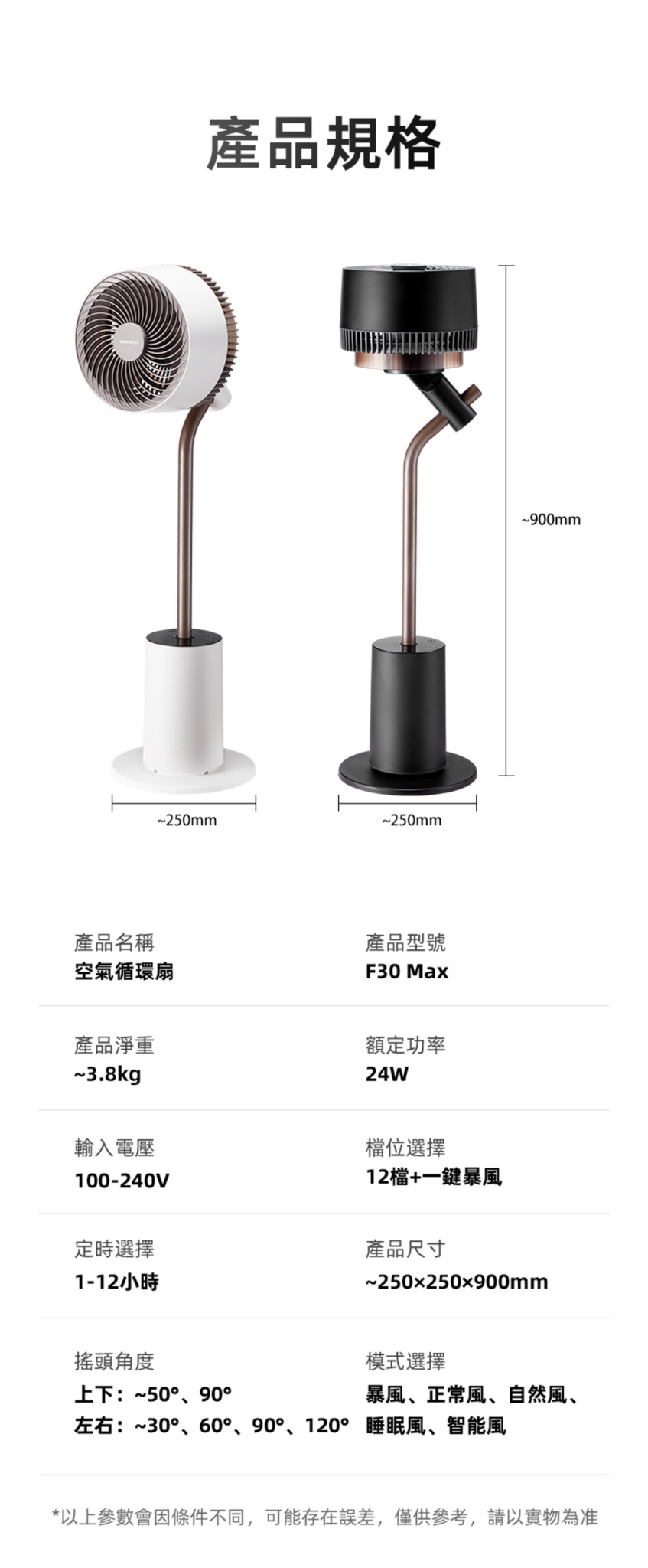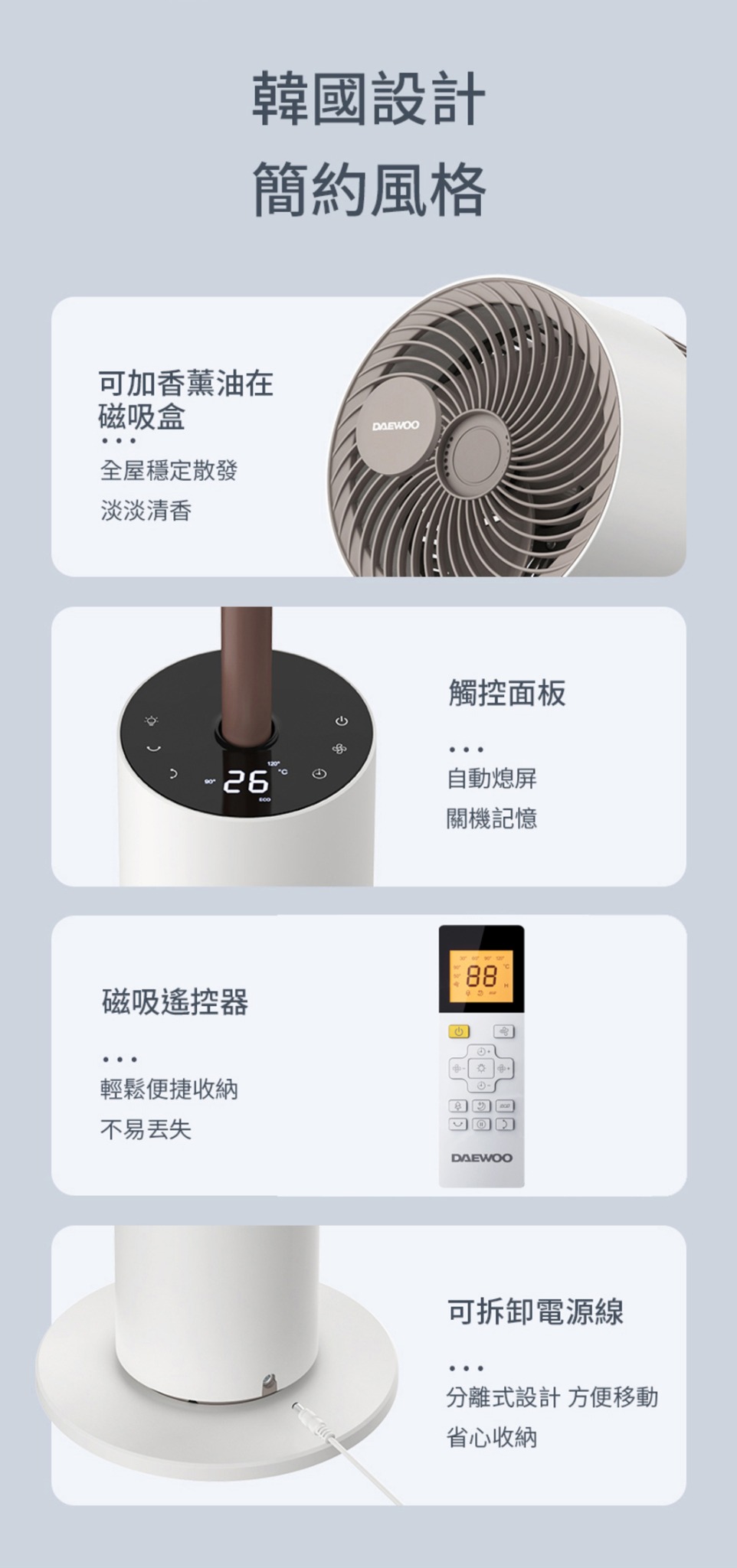 《pre-order》 💥預訂款💥需時大概7-14日💥 🇰🇷韓國Daewoo F30 MAX 空氣循環扇 🇭🇰香港行貨,一年保養 Daewoo最新推出F30 Max 空氣循環扇,具備上下、左右搖擺送風,自帶ECO 智能調速,12檔風速,5種風類型可調節,噪音低至22.6dB,產品內置磁吸香薰盒,自加精油可以令全屋充滿清香。韓風簡約設計,又具備帶夜燈功能,打破傳統循環扇的古老設計,放在家中如藝術品一様,功能及外觀設計也是無懈可擊。 🌈有兩色可供選購 黑色 白色 ✔️升級語音控制及液晶顯示remote ✔️廣角送風,3D廣角搖頭,多方位立體送風 ✔️超廣風距,6m大風量,清涼快速覆蓋全屋 ✔️精緻設計,落地夜燈尤如家中藝術品 ✔️5大模式,正常風,暴風,智能風,自然風,睡眠風,多功能隨心選擇 ✔️ECO 智能調速,12檔變頻風,快速平衡室溫,節能省電 ✔️1-12小時定時設計,到時關機,使用時間盡在掌握 ✔️舒適生活,可加香薰油在磁吸盒,全屋穩定散發淡淡清香 ✔️操作簡易,觸控面板, 磁吸遙控器, 輕鬆操作 ✔️移動方便,分離式設計,可拆卸電源線 ✔️易清洗,網罩拆除即可清洗 ✴️產品規格✴️ 產品名稱:智能語音循環扇 產品型號:F30 Max 產品淨重:約3.8kg 產品尺寸: :約250*250*900mm 額定功率 : 24W 輸入電壓: 100-240V 檔位選擇 :12檔 + 一鍵暴風 模式選擇: 正常風,暴風,智能風,自然風,睡眠風