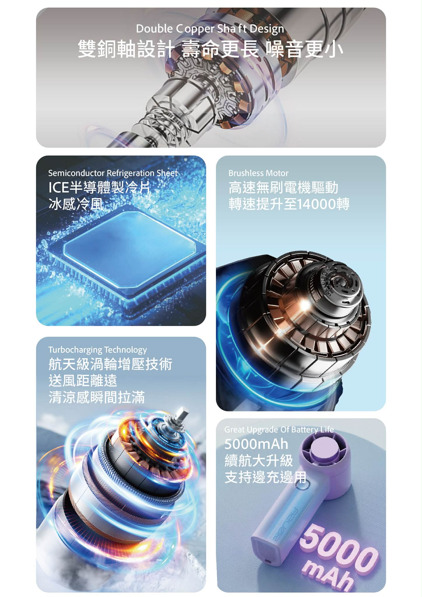 ✔️航天渦輪增壓系統:5檔風力調節,3秒極速降溫,風力提升1.5倍,讓您感受颶風級涼感