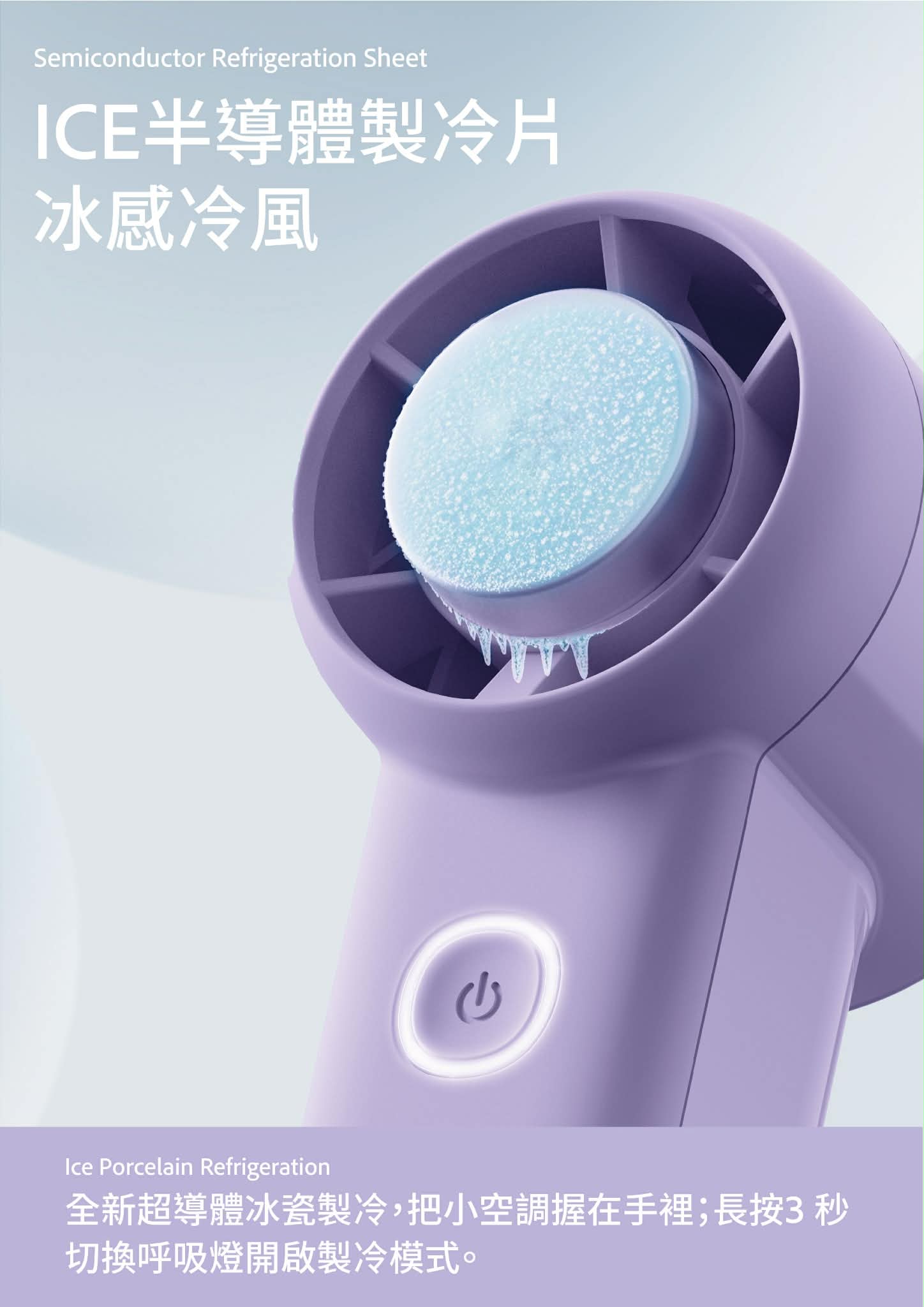 ✔️雙重降溫系統:涼風+冰敷模式,長按3秒即時啟動半導體製冷片+冰瓷技術,手握即享涼快夏日