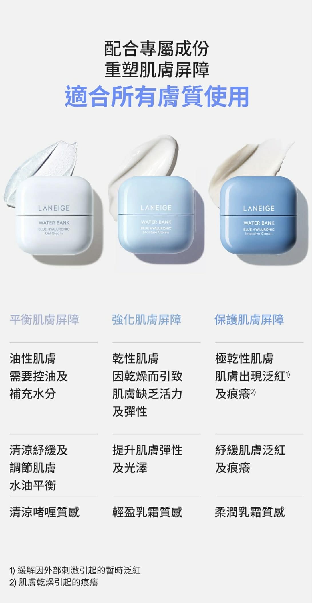 白色呢款深層補水💧平衡肌膚屏障,調節水油平衡,降溫減紅👍🏻清涼啫喱質感,主要針對油性肌膚或需要控油及補充水分既肌膚❤️